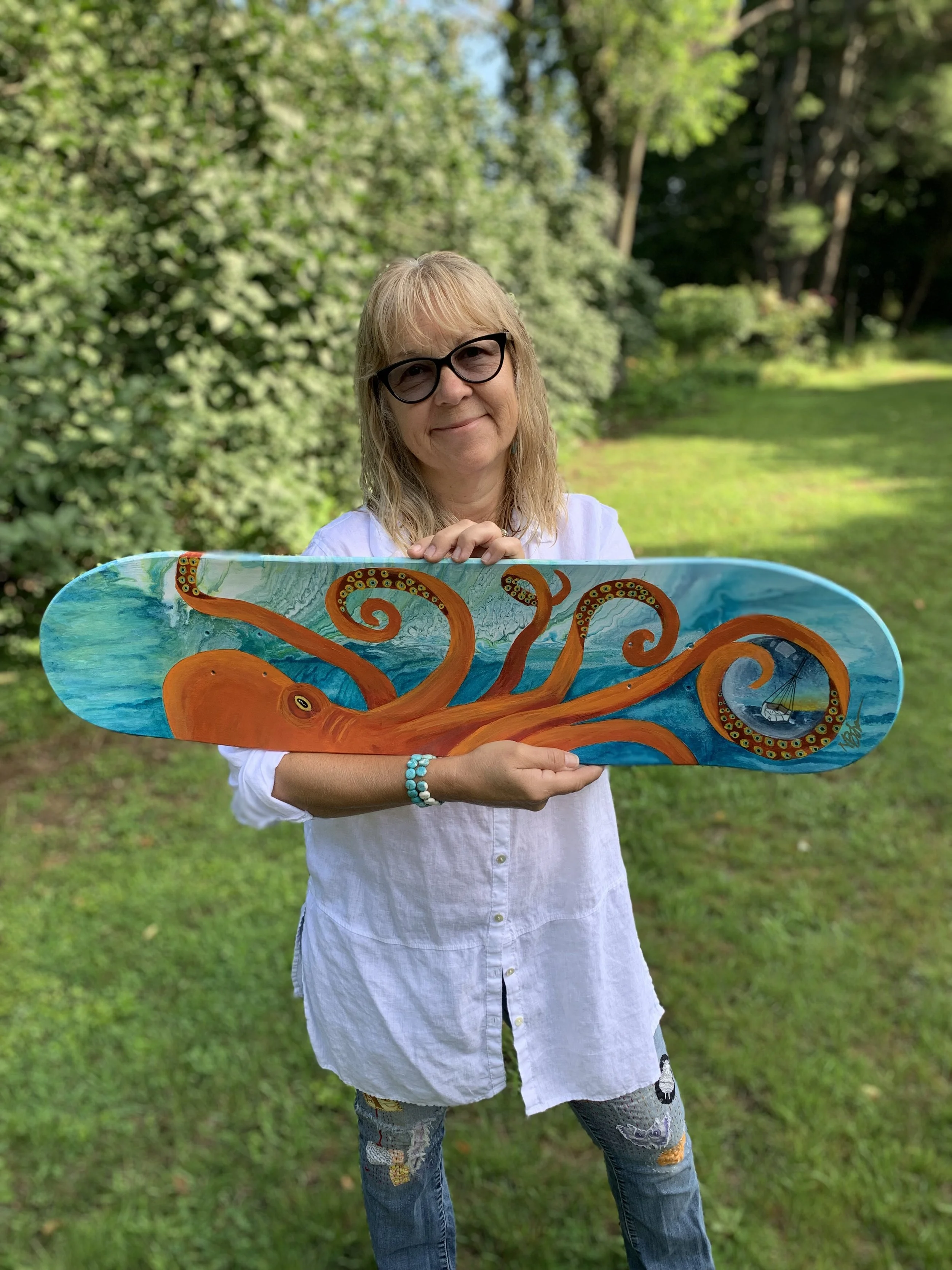 Nancy Bariluk-Smith is an abstract artist creating expressive, bold, and colorful works of art. Living near the ocean in Southern Maine, Nancy is inspired by the colors and dramatic ever changing New England landscapes.